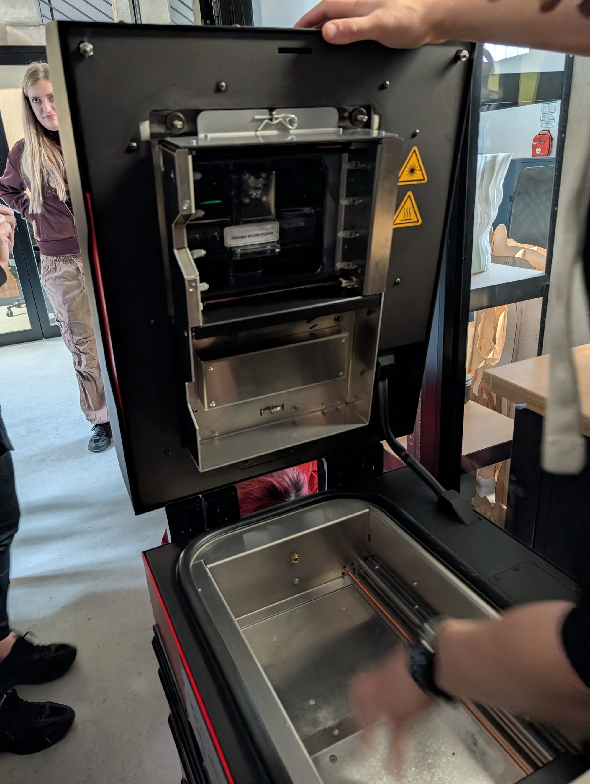 Druk z proszku polimerowego - dwa pola robocze , do jednego wsypujemy proszek, stół na którym będziemy drukować jest u góry