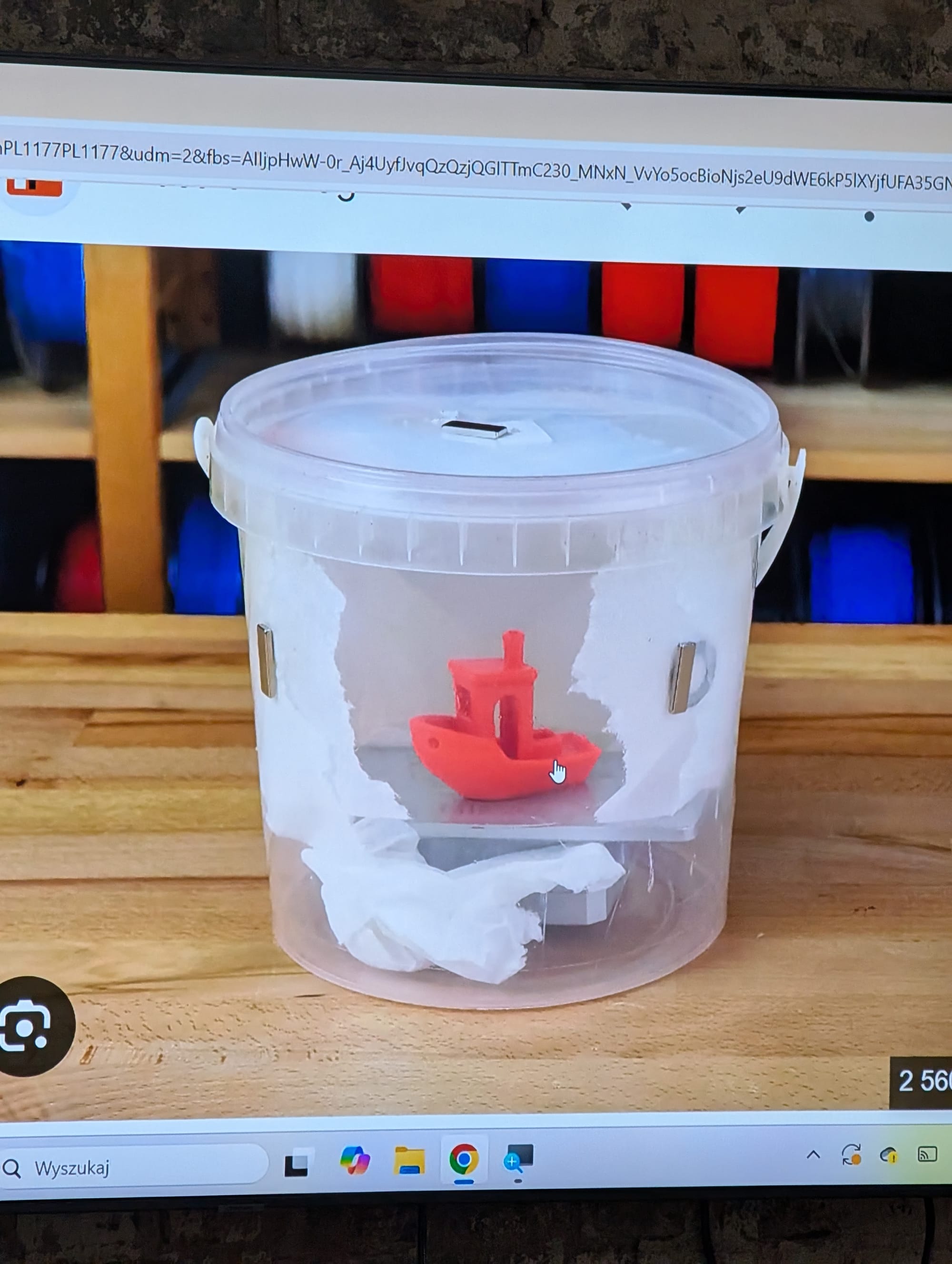 PET-G wysoka temperatura druku 250st, super wytrzymały na uderzenia, nie łączy się z PLA (można drukować podpory i element z różnych i łatwiej oddzielić)