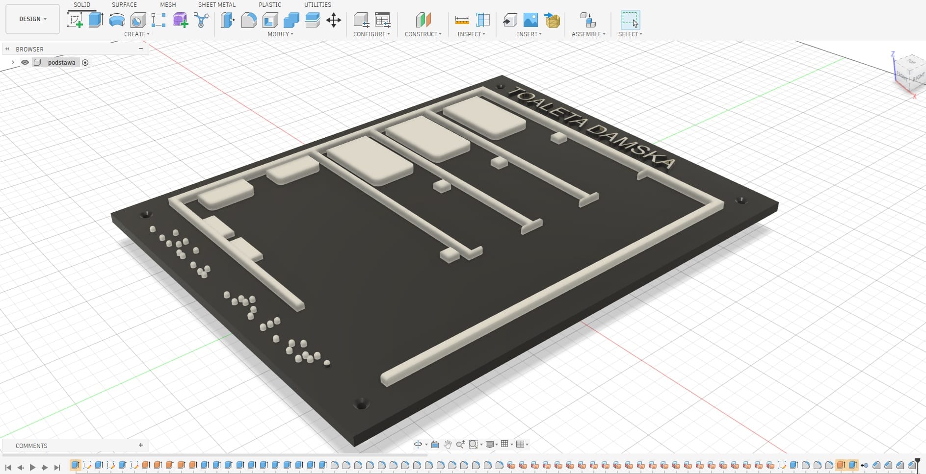 - Na podstawie zdjęć zrobiłam szkic toalety, który potem na rysowałam w Fusion.